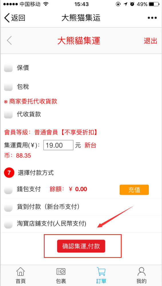 第七步:選擇付款方式(支持支付寶微信支付)最后不要忘記點擊確認集運哦